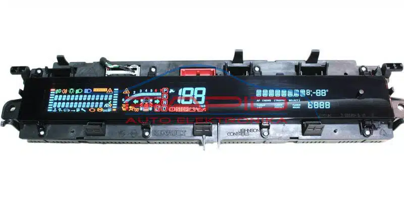 Bardzo często występująca usterka zestawu wskaźników w samochodach RENAULT SCENIC II. Najczęstsze objawy to samoczynne wyłączanie się zestawu wskaźników w czasie jazdy, resetowanie się zegara i przebiegu dziennego, migotanie wyświetlaczy oraz całkowity zanik wskazań. Często dochodzi też do samoczynnej zmiany przebiegu w pamięci licznika.